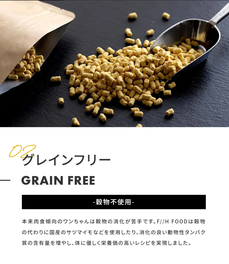 穀物不使用により、消化負担軽減・穀物アレルギー配慮というメリットがあります。