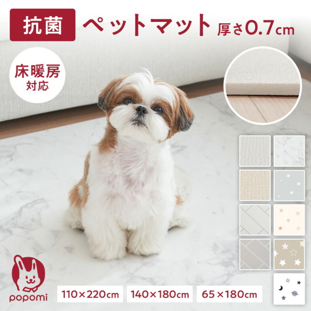 【楽天90冠】 ペットマット 防水 滑り止め 抗菌 PVC 犬 ペット マット クッションマット プレイマット 完全防水 大理石 防炎 撥水 大判 厚手 pvcマット ペット用 防音 猫 リビング リバーシブル popomi ポポミ 床暖房対応
